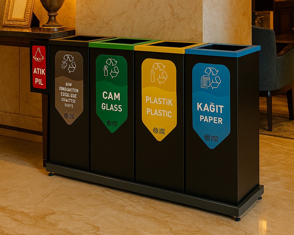 Özellikle ana geçişlerde konumlandırılan yüksek kapasiteli bir dörtlü sıfır atık kutusu, hem düzeni hem de erişilebilirliği aynı anda sağlar.